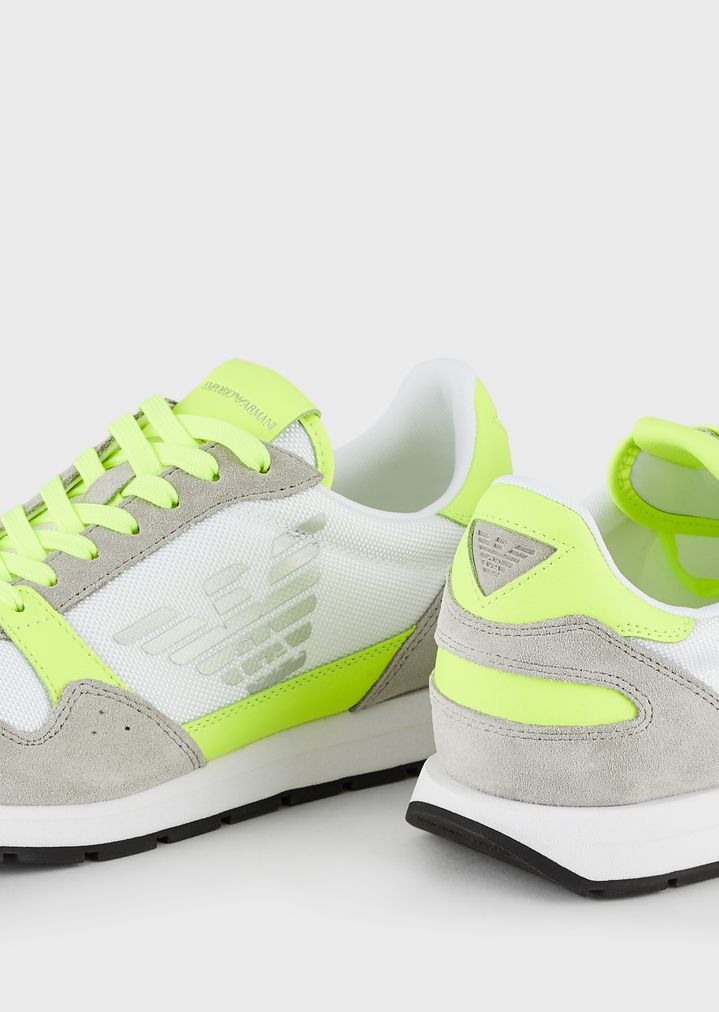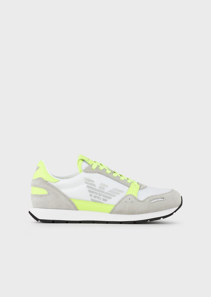 Sneakers aus Techno-Stoff und Veloursleder mit Monogramm seitlich