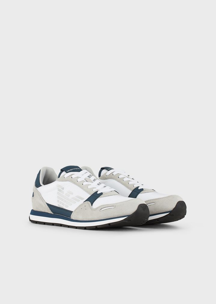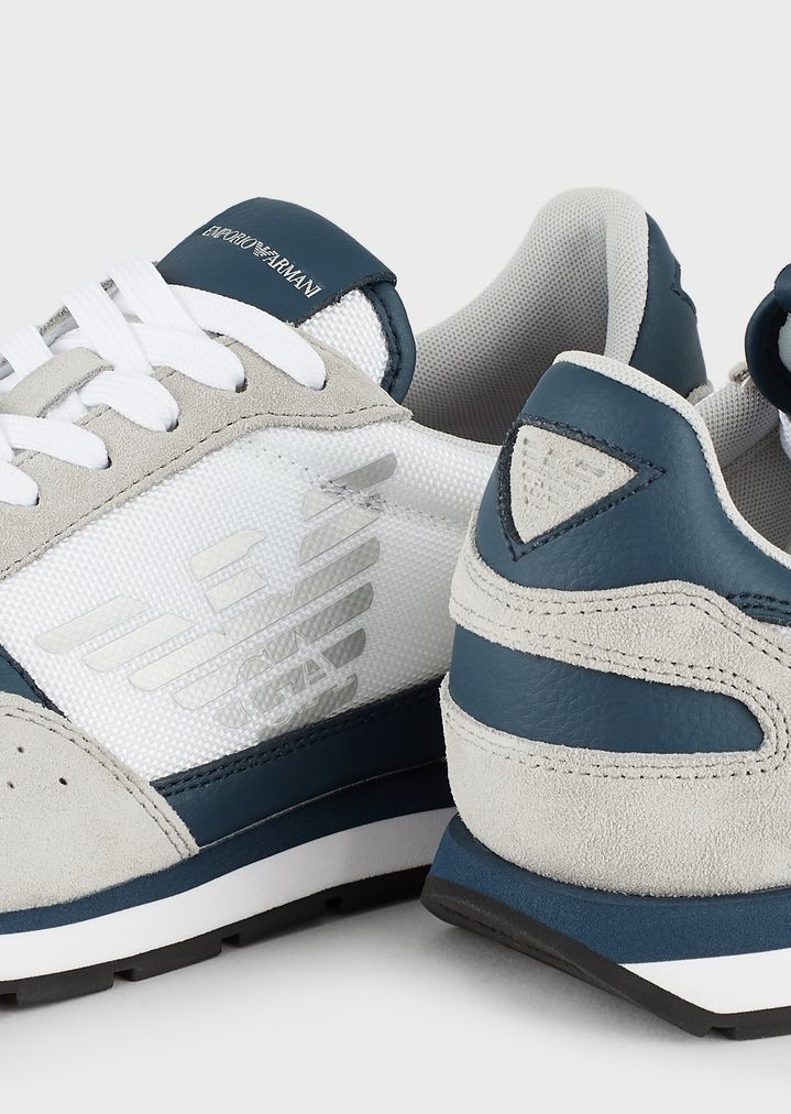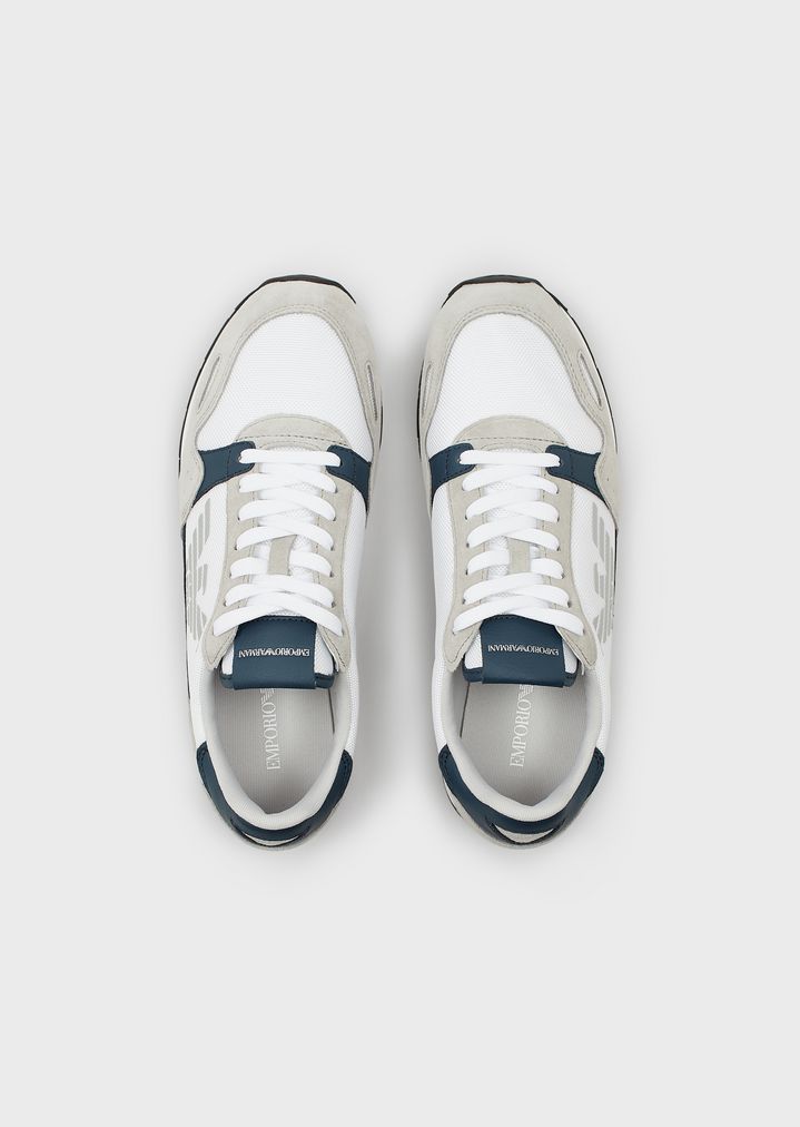 Sneakers aus Techno-Stoff und Veloursleder mit Monogramm seitlich