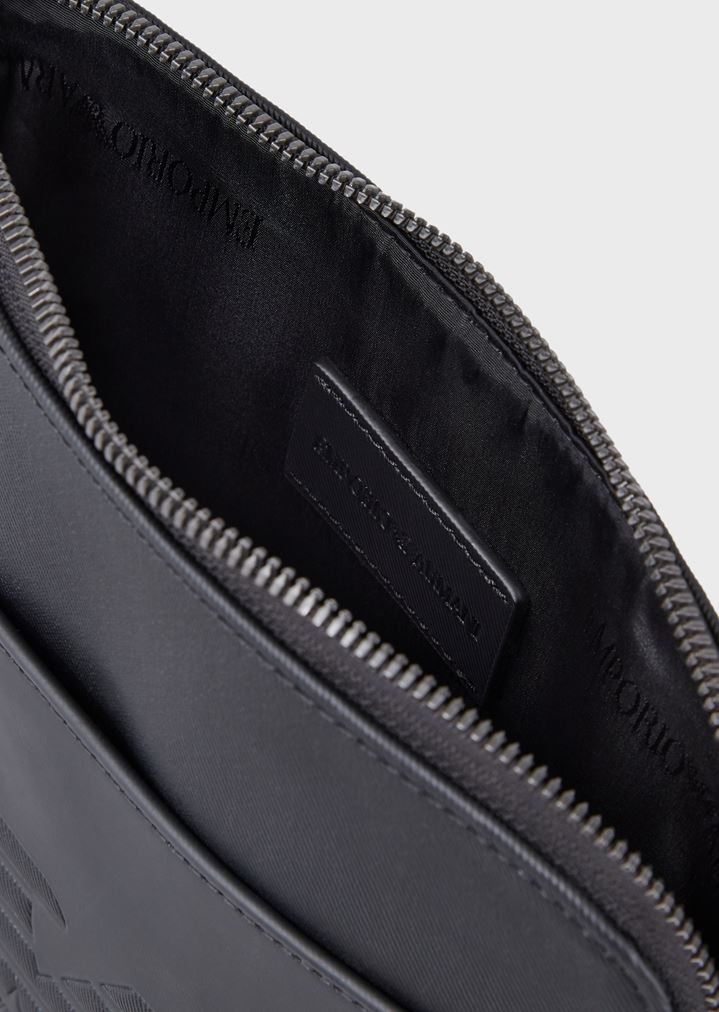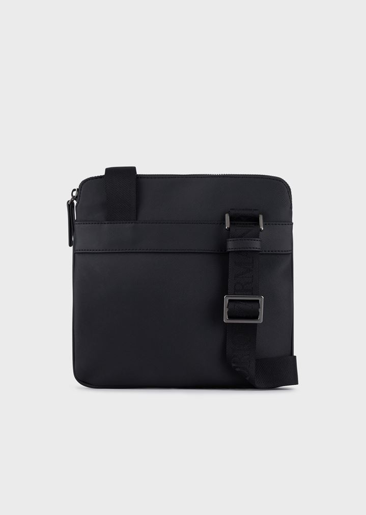 Flache Umhängetasche aus Faserkunstleder mit Relieflogo