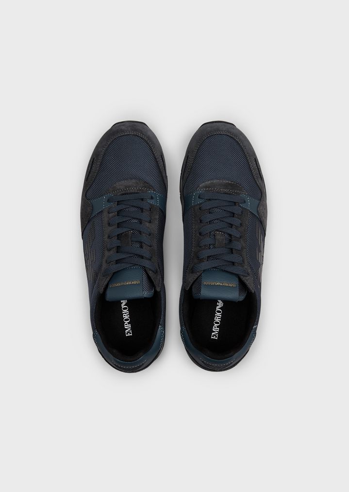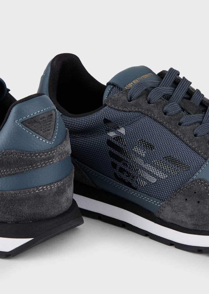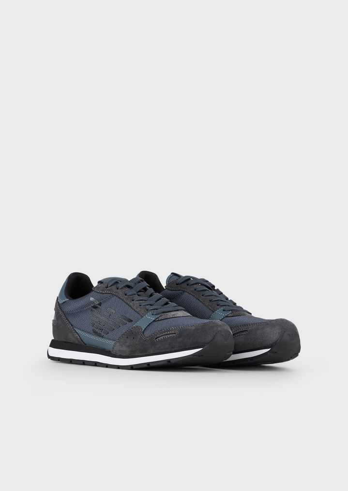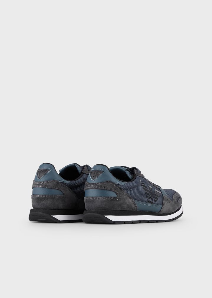 Sneakers aus Techno-Stoff und Veloursleder mit Monogramm seitlich