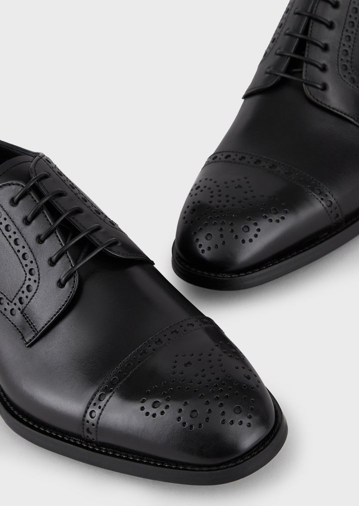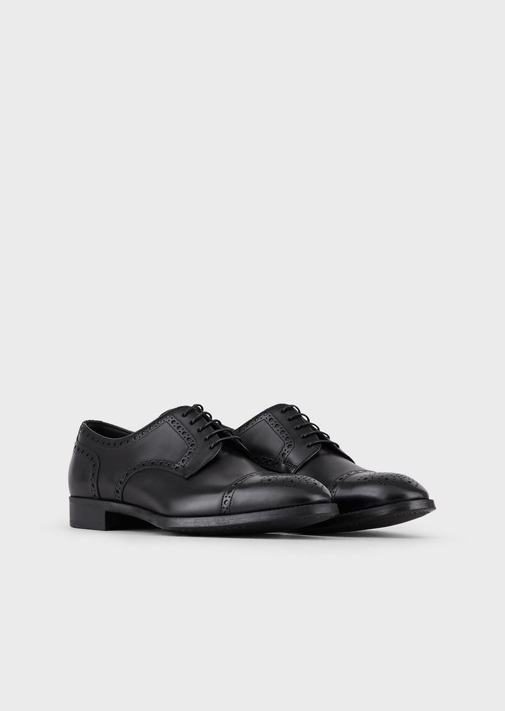 Derby brogue de piel cepillada con perforaciones