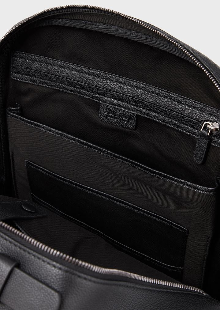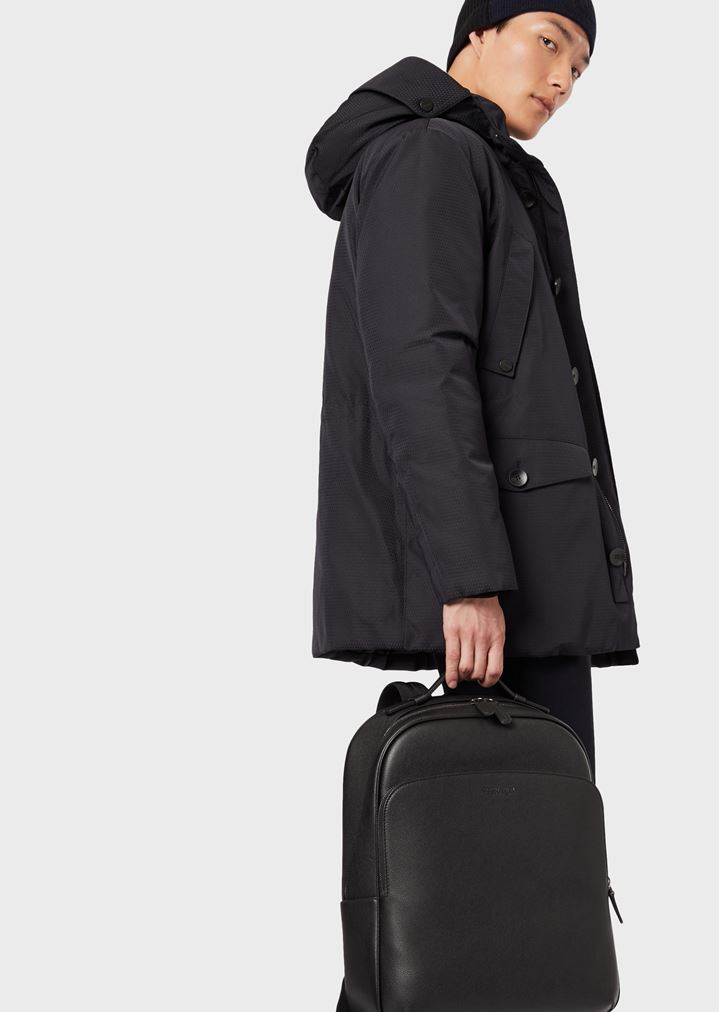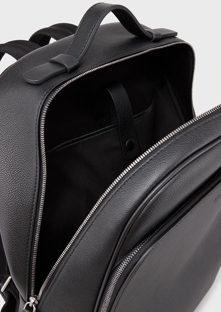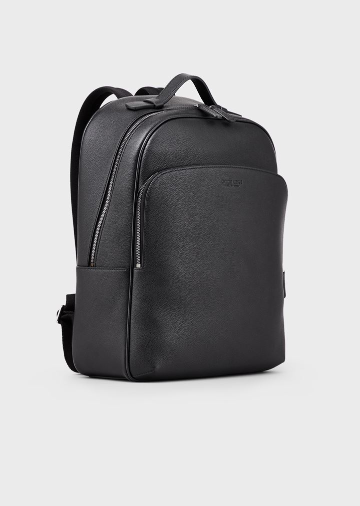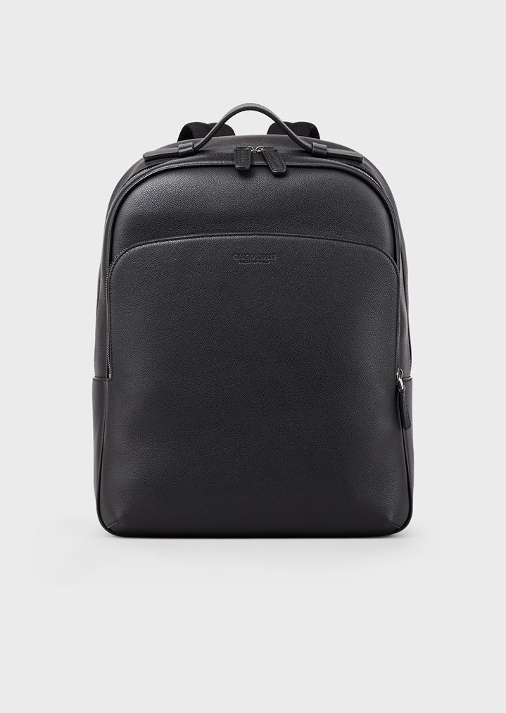 Un accesorio de líneas esenciales pensado para un hombre urbano a quien le encanta vivir plenamente el día y la ciudad. Mochila confeccionada en suave piel de becerro granulado: la piel originalmente es lisa y luego se vuelve irregular con la especial elaboración; además el acabado cromado le da un efecto natural al accesorio. El modelo se completa con un accesorio de rutenio satinado y el icónico logotipo impreso en el centro. Medidas: 29 x 38 x 14 cm.