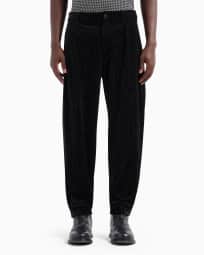 Hose mit einer Bundfalte, gefertigt aus Seersucker-Samt mit Punkte-Muster