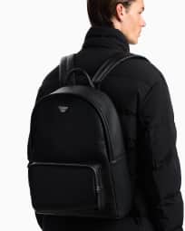 Runder ASV Rucksack aus neu aufbereitetem Saffiano-Leder mit Adler-Plakette