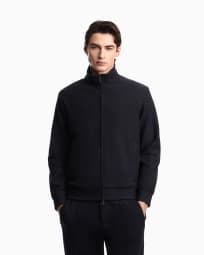 Sweatshirt mit durchgehendem Reißverschluss aus Interlock-Jersey aus einer Lyocell-Mischung mit Jacquard-Schriftzug