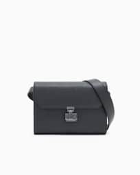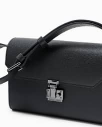 Umhängetasche mit Klappe, gefertigt aus getrommeltem Leder