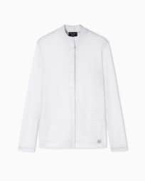 Icon Bluse aus leichtem, gestreiftem Jersey mit Grandad-Kragen