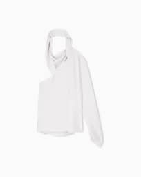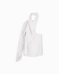 Einschulterbluse aus Seidengeorgette mit Schärpe