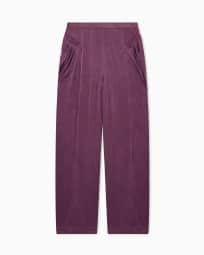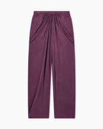 Hose aus Stretch-Cupro mit weitem Bein und Drapierung vorn