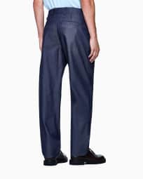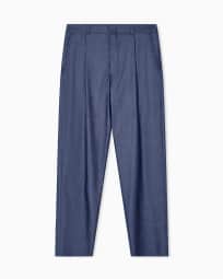Hose mit einer Bundfalte, gefertigt aus Baumwolle und Seide mit Denim-Effekt
