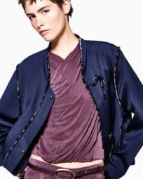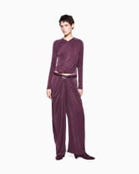 Langarmshirt aus Cupro-Jersey mit drapierter Vorderseite