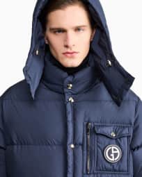 Mit nachhaltigen Gänsedaunen wattierte Bomberjacke mit Kapuze