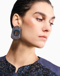 Ovale Ohrringe mit Streifenmuster und einem floralen Motiv