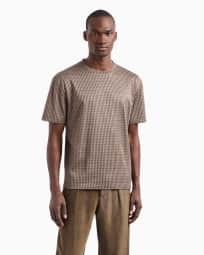 T-Shirt mit Rundhalsausschnitt aus Seiden- und Baumwolljacquard