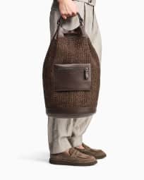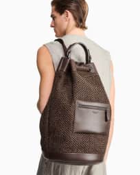 Raffia and leather backpack