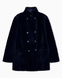 Reversible, double-breasted sheepskin pea coat