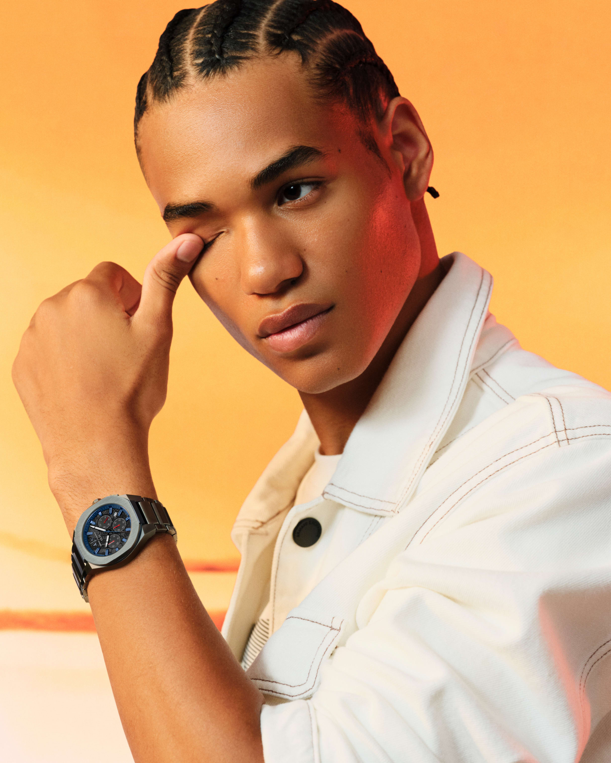 For the women’s collection, a new ladies' watch with a refined yet bold character is introduced, featuring faceted bracelets and architectural feel: the Armani Exchange Audora. The collection expands with A|X Sync styles for women’s . Featuring a synthetic diamond positioned at the 6 o’clock mark, the stone is beautifully showcased in a classic prong setting, adding a subtle yet sophisticated touch of brilliance to the timepiece.