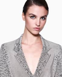 Single-breasted jacket made from jacquard viscose jersey
