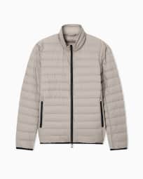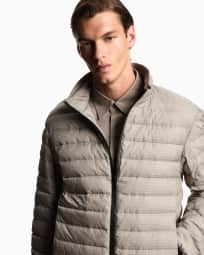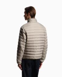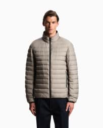 Water repellent down jacket in quilted nylon with jacquard lettering logo