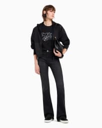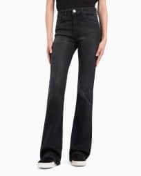 ASV J47 mid-high rise jeans with a flared leg in a worn-look organic stretch denim