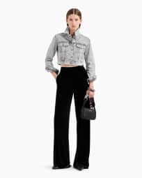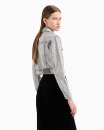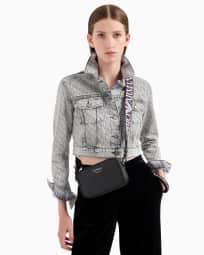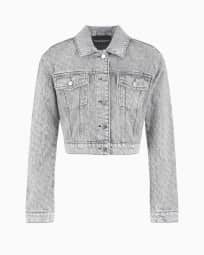 Cropped 12.5 oz denim jacket with all-over rhinestone logo