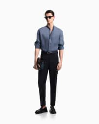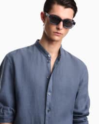 Garment-dyed linen shirt with guru collar