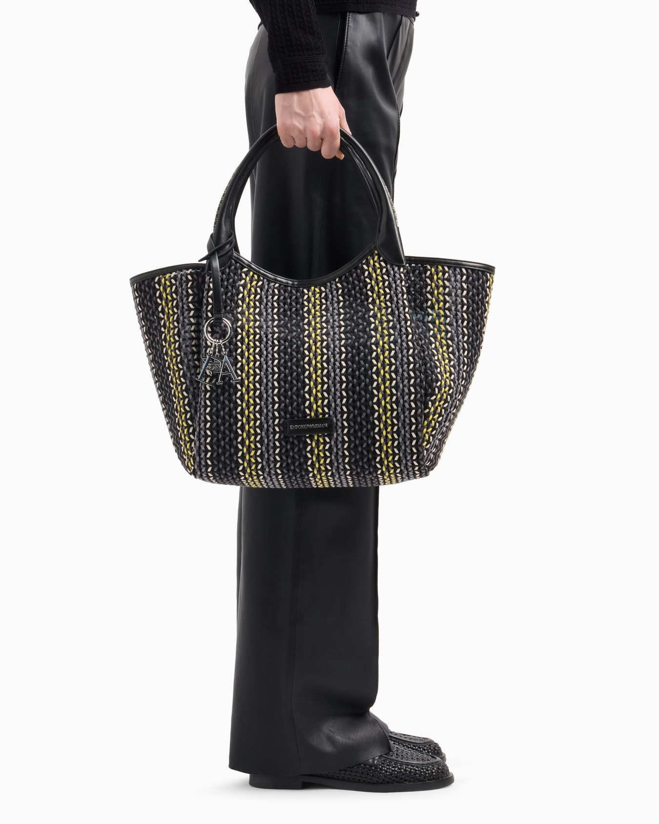 Multicoloured basketweave shopper bag
