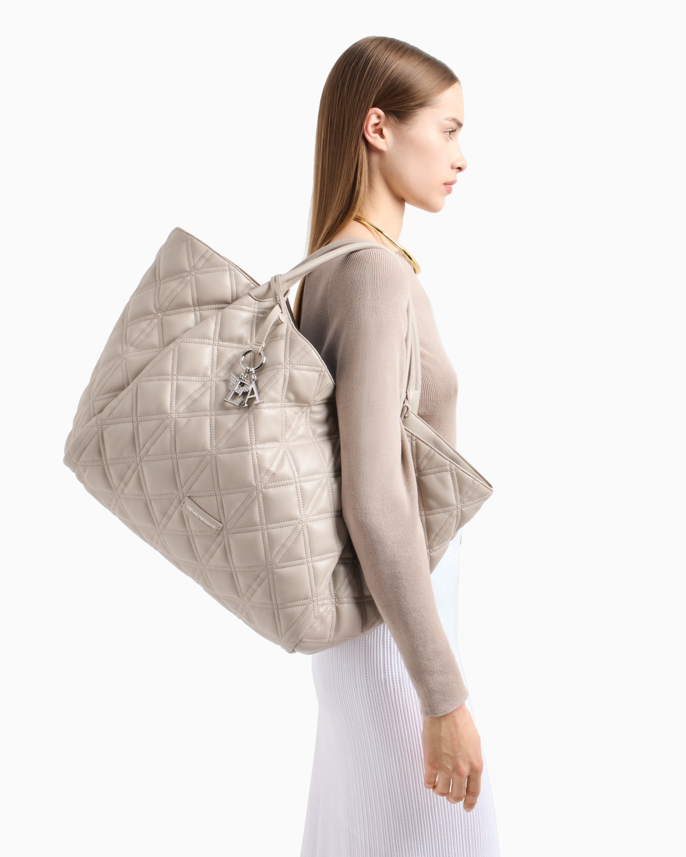 Quilted nappa leather-effect oversized shopper bag