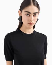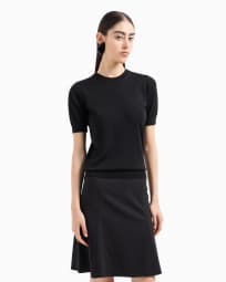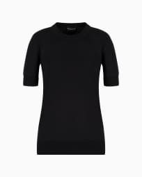 Short-sleeved jumper in plain-knit pure virgin wool