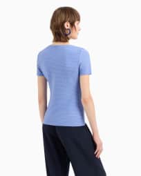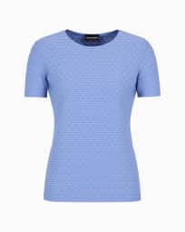 Stretch jersey short-sleeved jumper with an embossed irregular knit