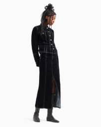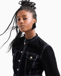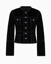 Velvet-effect flocked denim jacket with guru collar