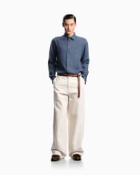 Garment-dyed linen shirt with French collar