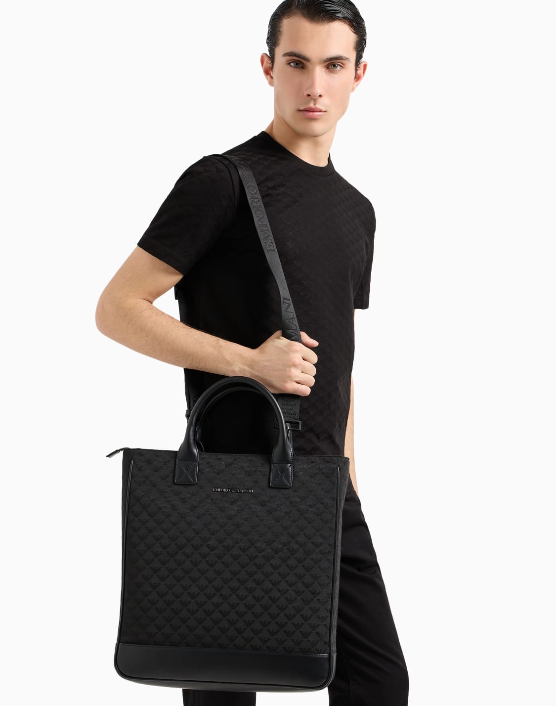 Nylon one-shoulder backpack with all-over jacquard eagle