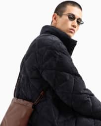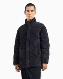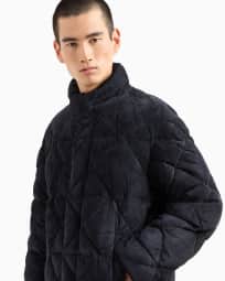 Suede pea coat with down padding
