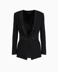 Single-breasted jacket in silk cady with rhinestone details