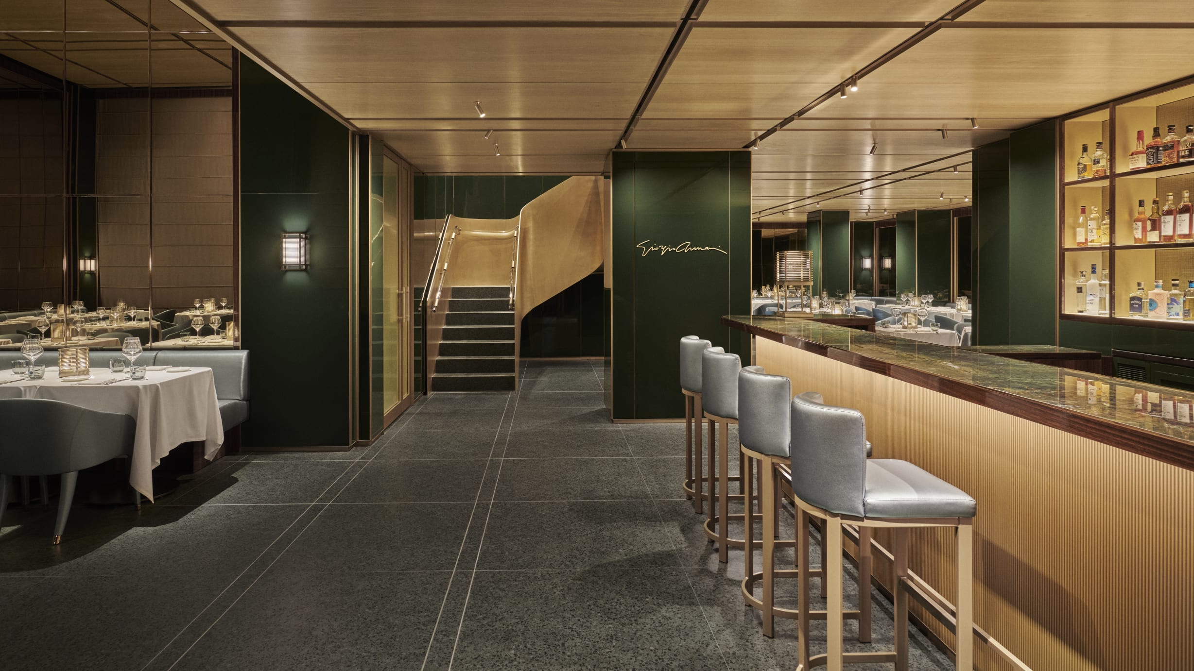 WELCOME TO THE ARMANI/RISTORANTE IN NEW YORK CITYGiorgio Armani’s building on Madison Avenue is home to an Armani/Ristorante, along with private residences and boutiques for Giorgio Armani and Armani/Casa products. The restaurant, which overlooks Madison Avenue, features a contemporary design infused with vintage charm. Guests can enjoy a waiting area at the champagne bar, a spacious main dining area with soaring ceilings, and a more intimate room for special occasions. The decor highlights furnishings with soft lines and green lacquer accents, beautifully complemented by eucalyptus wood details. The menu marries traditional Italian recipes and culinary techniques with a modern New York twist.