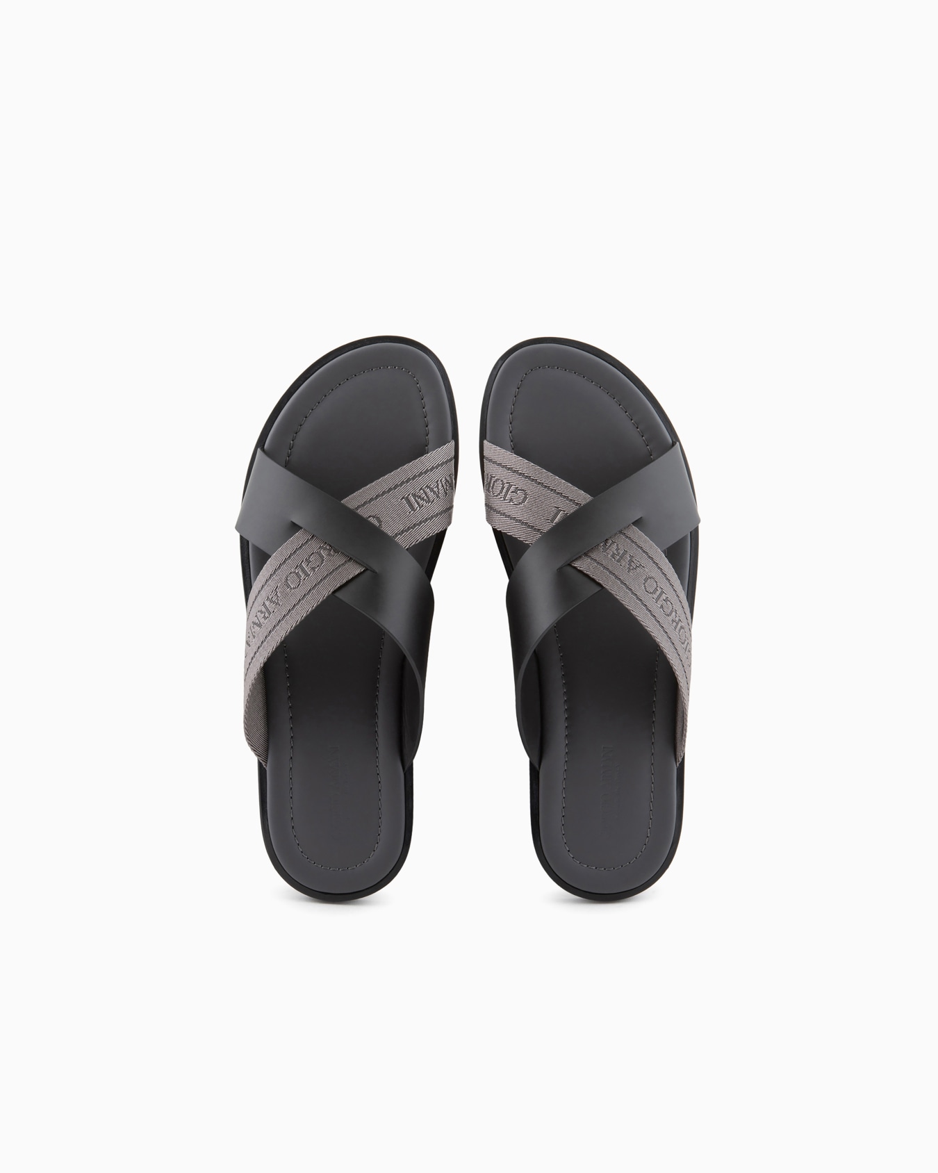 Leather cross sandals with two-toned tape