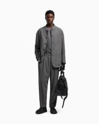 One-pleat trousers in a silk and cotton blend with a stippled motif