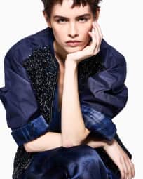 Embroidered cropped coat in silk shangtung with beaded front