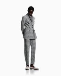 Double-breasted blazer in knit-effect jersey with optical Icon print