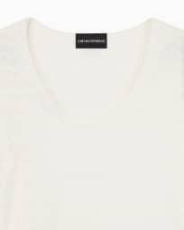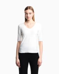 Two-way stretch jacquard motif nylon-jersey V-neck jumper