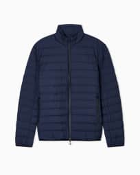 Water repellent down jacket in quilted nylon with jacquard lettering logo