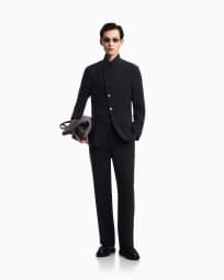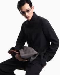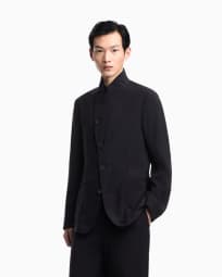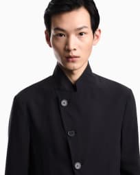 Icon guru-collar jacket with off-centre fastening in peach-feel canvas