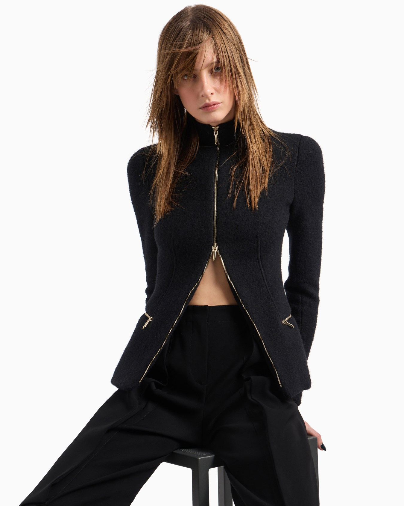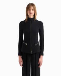 Cotton, wool and cashmere double cloth zipped jacket