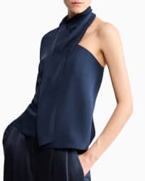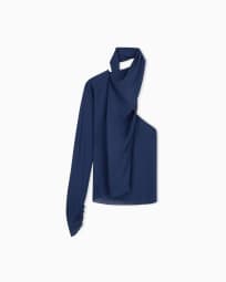 One-shoulder shirt in silk triple georgette with a sash