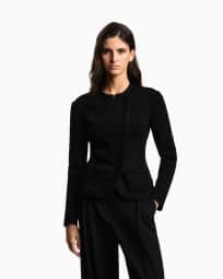 Viscose jacquard jacket with abstract motif and off-centre closure