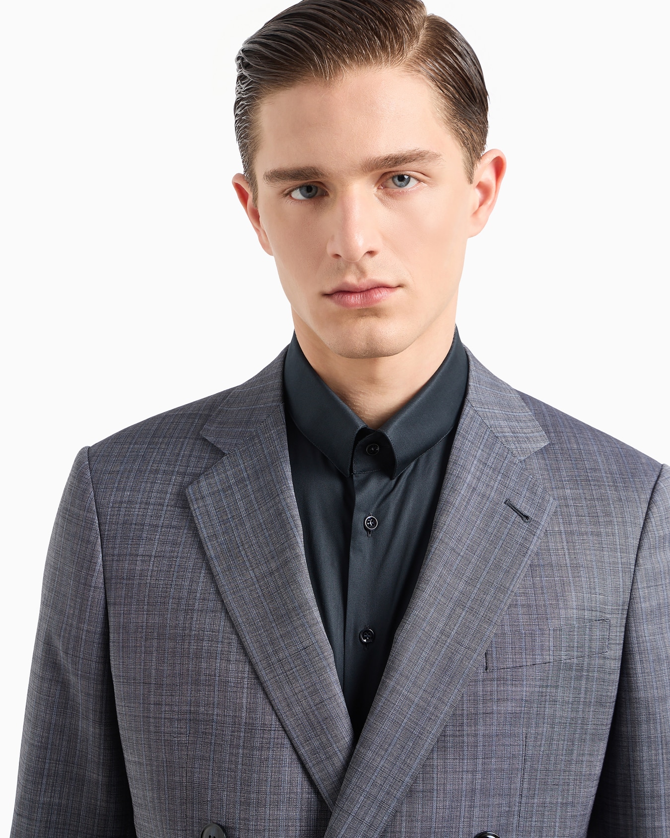Soho line double-breasted check suit in virgin wool