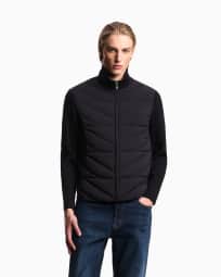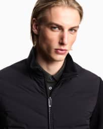 Travel Essentials two-piece effect full-zip down jacket with knit sleeves