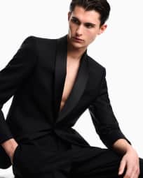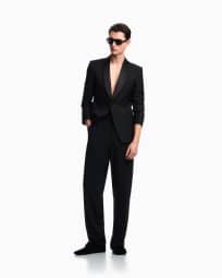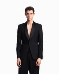 Shawl lapel jacket in plain worsted wool