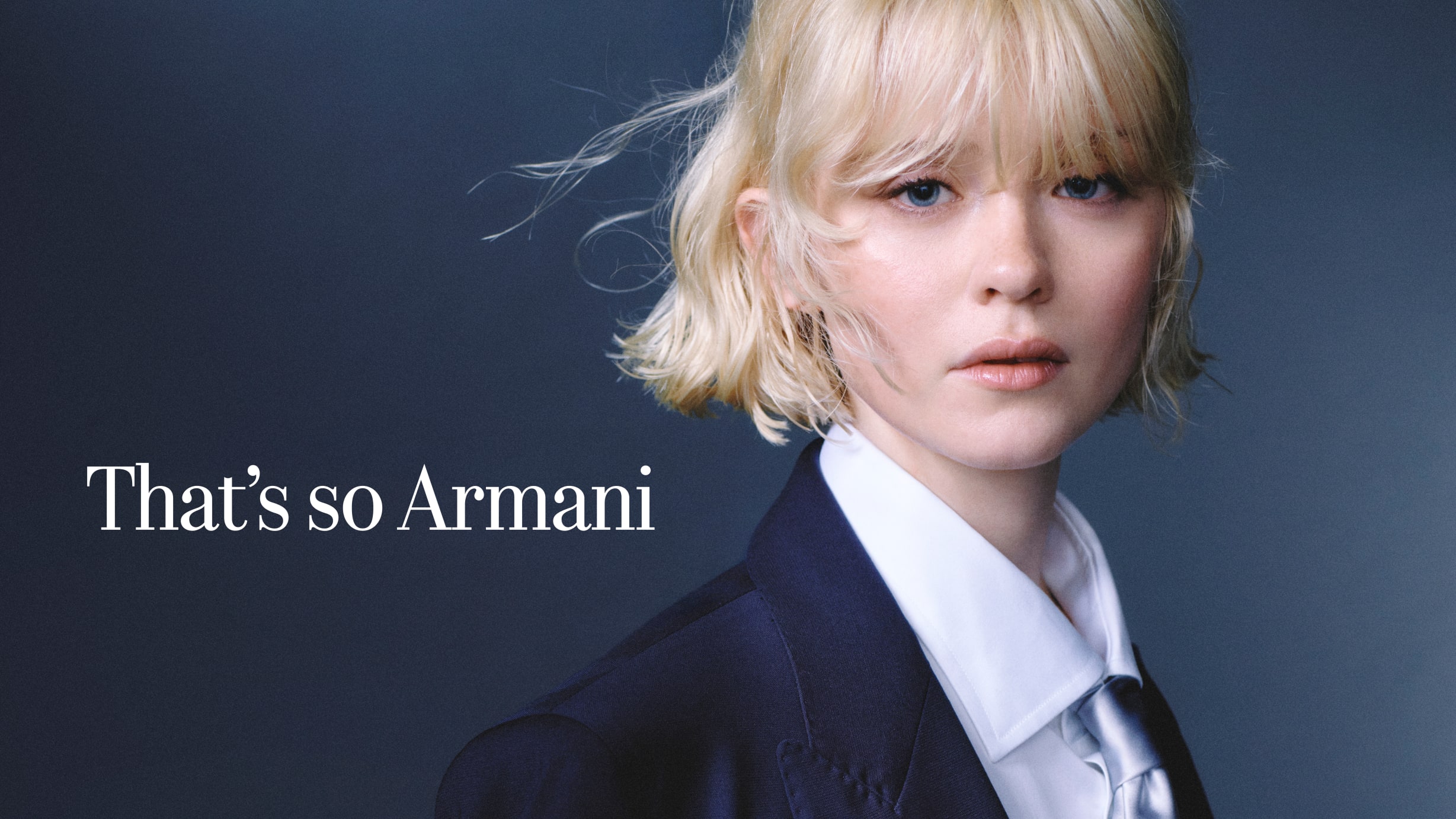 - Maisie Peters, an emerging talent on the British pop scene, takes part in the That’s So Armani project, bringing her fresh and personal vision into dialogue with the brand’s aesthetic of soft tailoring and fine fabrics such as vicuña, cashmere, and superfine wool.